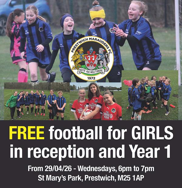 About Contact Membership info Safeguarding Volunteers Teams Kit policy Coaching Zone Sponsorship Club shop Fundraising Mini Marauders Prestwich Heys link Behind the scenesDownload our mobile app to hear more about Prestwich Marauders FC.